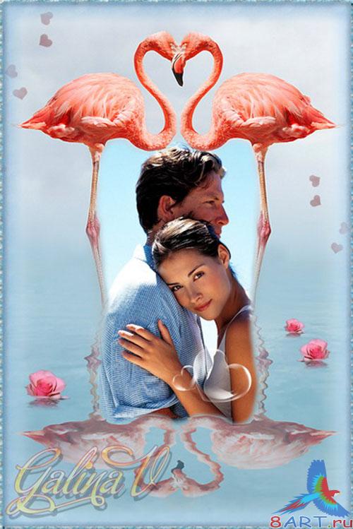 Оригинальная рамка в видах фото - Розовые фламинго