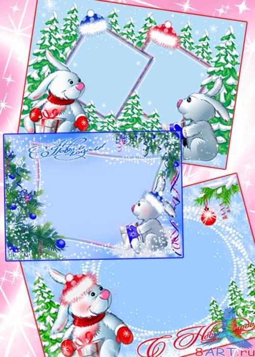 Детские новогодние рамки в угоду кому photoshop - Кролики начиная с подарками