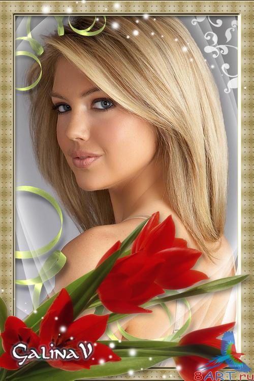 Весенняя рамка в пользу кого фото - Красные тюльпаны