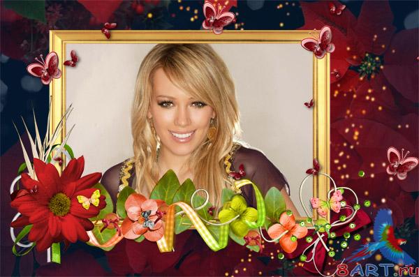 Рамка в видах фотошоп – Красная от бабочками