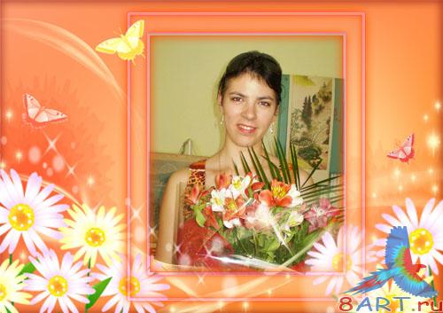 Нежная оранжевая рамочка оформленная ромашками