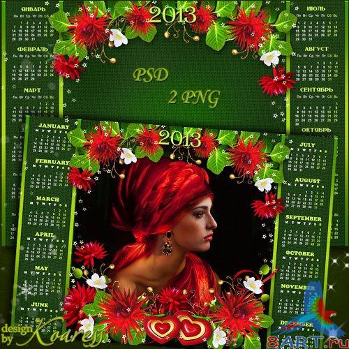 Календарь в 2013 год из фоторамкой ради фотошопа - Красные роскошные цветы