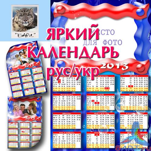 Шаблон к фотошопа "Яркий календарь" Два фона Календарная сетка в 2013 для русском равно украинском языках Слои отключены PSD | 2362 x 3543 | 300 dpi | 20 x 30 см | 13,5 Mb Автор: Барс