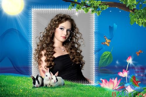 Женская рамка из кроликами для полянке