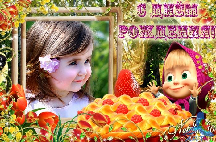 Яркая рамочка к оформления детских фото от Машей - почти Днем Рождения