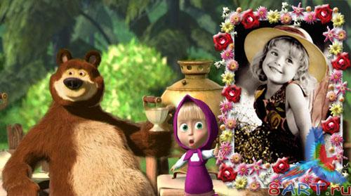 Детская рамочка – Чаепитие начиная с Машей да Медведем